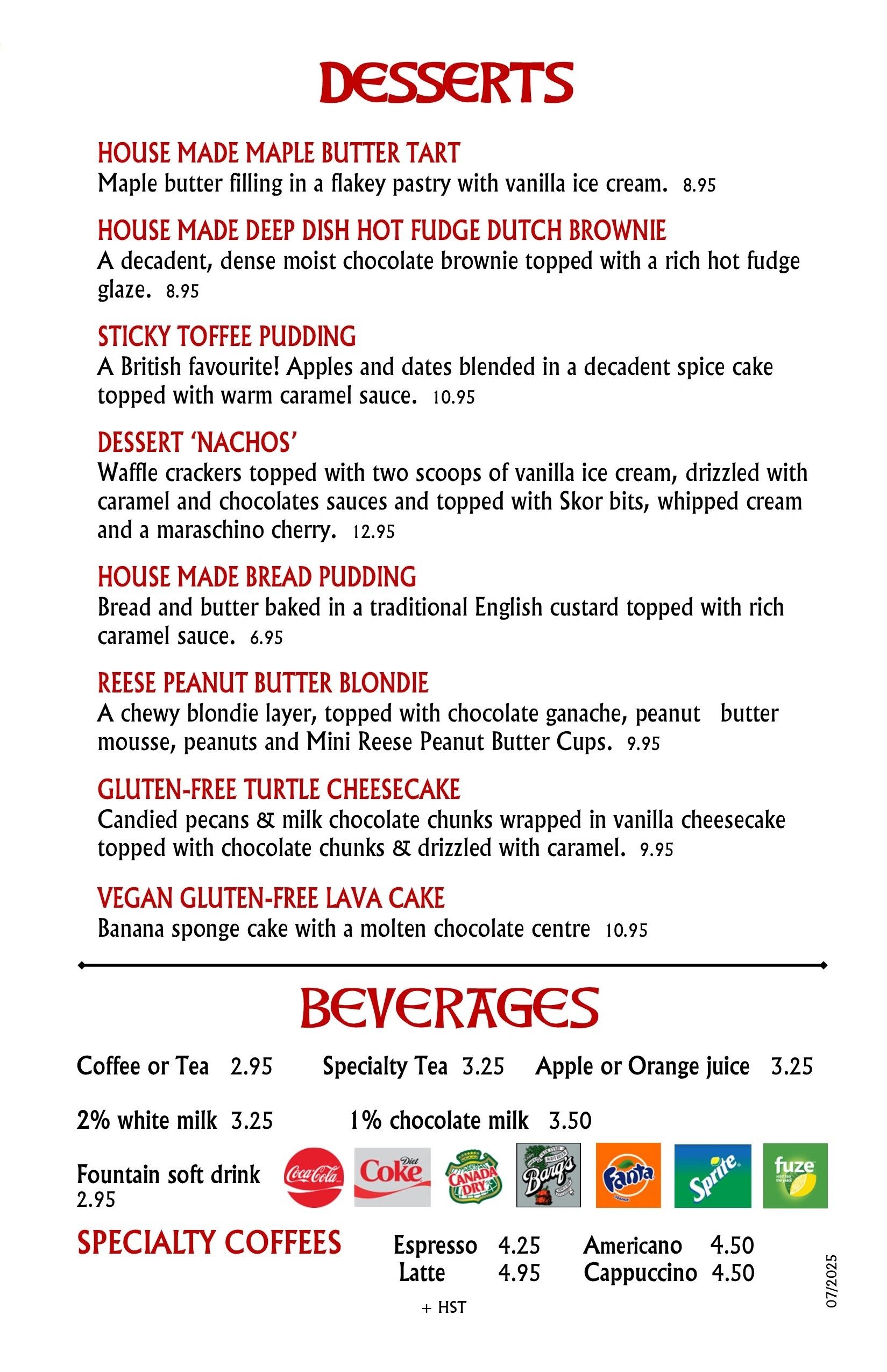 • Pub & Drink Menu